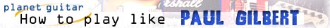 Als Gitarrist der Band Mr.Big trat Paul Gilbert ins Rampenlicht. Mit Solo-Veröffentlichungen wie "King of Clubs" oder seinen frühen "Racer X"-Alben hatte der sympathische Schnellfinger aber zu jeder Zeit weitere, sehr persönliche Asse im Ärmel. Im Folgenden möchte ich euch mit einigen von Pauls ureigenen"Trademark Licks" versorgen Die neun Trainingseinheiten, die sich mit den wichtigsten Aspekte seines Gitarrenstils auseinander setzen, hat Paul mir übrigens im Rahmen eines Interviews, exklusiv für euch mitgegeben. Also, anschnallen und los geht's. Viel Spaß dabei!!! Wer das ganze Interview lesen möchte: Ein Klick genügt !