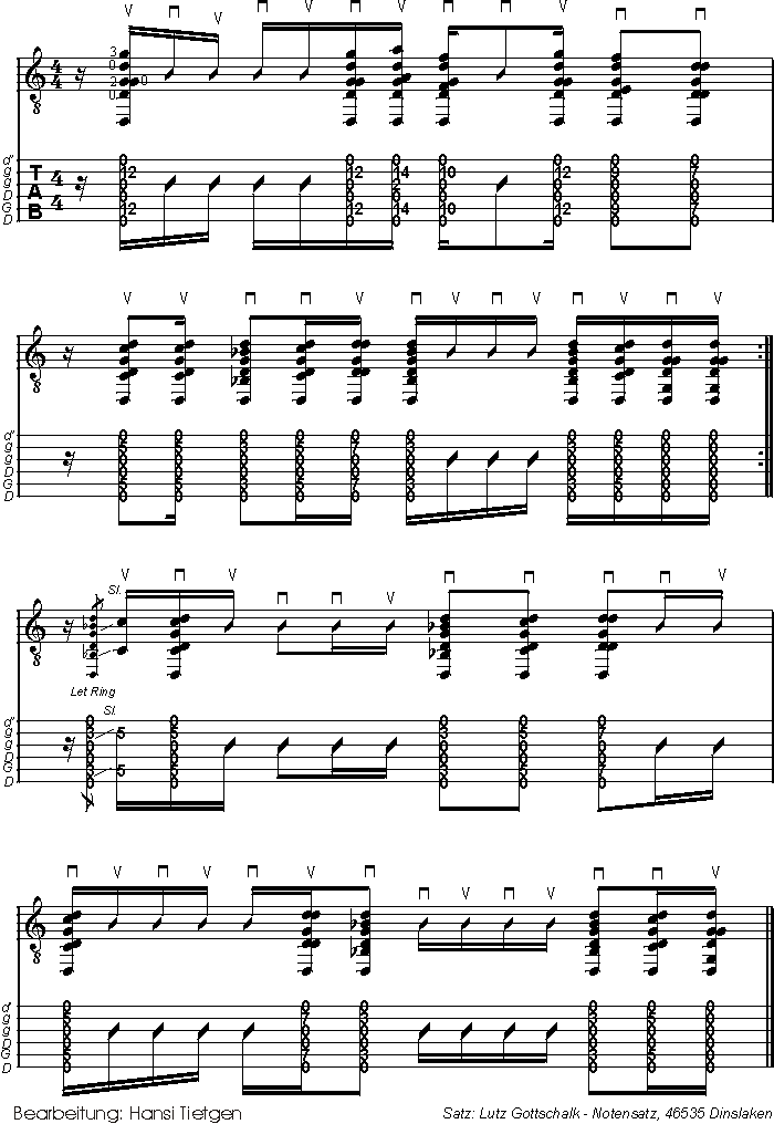 So, die Töne hätten wir. Fehlt noch die Rhythmik. Auch diesmal wollen wir dir mit einer Slo Mo-Version des Songs weiterhelfen. Lade dir das Audio runter, schnapp dir das ausgedruckte Notenblatt und versuche zunächst einmal, beim Anhören "mitzulesen". Nachdem du dir so eine erste Routine angeeignet hast, ist es an der Zeit, dir deine Gitarre zu schnappen. Beim praktischen Training können dir die im Notentext mitnotierten Ab- und Aufschlagszeichen sicher weiterhelfen.