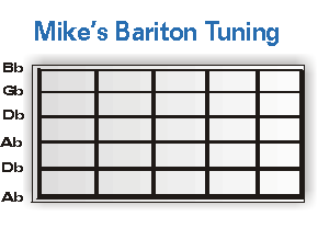 ÜBRIGENS:Das Intro von It's Been Awhile wird in der CD Fassung von zwei Gitarren gespielt. Dabei übernimmt Sänger Aaron Lewis den Akustik-Gitarren Part (Stimmung Eb,Ab,Db,Gb,Bb,Eb). Mike spielt die Chords mit einem cleanen E-Gitarren Sound. In unsere Transkription habe ich mich dazu entschlossen, ausschließlich Mikes Statement zu notieren. Aber ganz so einfach ist es dann doch nicht, denn Mr. Mushok verwendet bei vielen Songs auf Break The Cycle eine Custom-Made Ibanez Bariton Gitarre, die mit der illustren Stimmung Ab,Db,Ab,Db,Gb,Bb versehen wurde. So auch bei unserem Forschungsobjekt, dem Song It's Been Awhile. Um das tiefe Tuning seiner Klampfe in Intro und Strophe zu kompensieren, hat er sich dabei darauf verlegt seinen Part in der XII. Lage zu spielen.